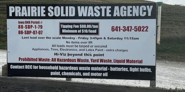 Prairie Solid Waste Agency accepts residential and commercial waste. We also accept appliances, tires, electronics. household chemicals & various other items. PSWA is a transfer station, not a landfill, meaning that H & H Trucking hauls the waste to Iowa Waste Services, Loess Hills, in Malvern, Iowa. Forms of payment are cash, checks and debit/credit cards.